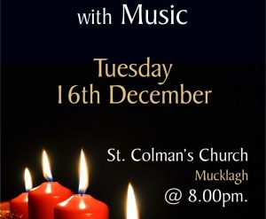 Please join us on Tuesday, 16th December at 8.00pm in St Colman’s church Mucklagh for a Christmas Reflection with Music. This is an opportunity to create a reflective space and time amidst the hustle and bustle of the Festive Season. It’s an opportunity to stop, and prepare for Christmas using the medium of…