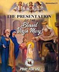 Presentation of the Blessed Virgin Mary – Presentation Day on Friday stresses an important truth about Mary: From the beginning of her life, she was dedicated to God. She became a greater temple than any made by hands. God came to dwell within her in a marvellous manner and sanctified her for her unique role in God’s Saving work. At the same time, the magnificence of Mary enriches her children. hey—we—too are temples of God and sanctified in order that we might enjoy and share in God’s saving work.